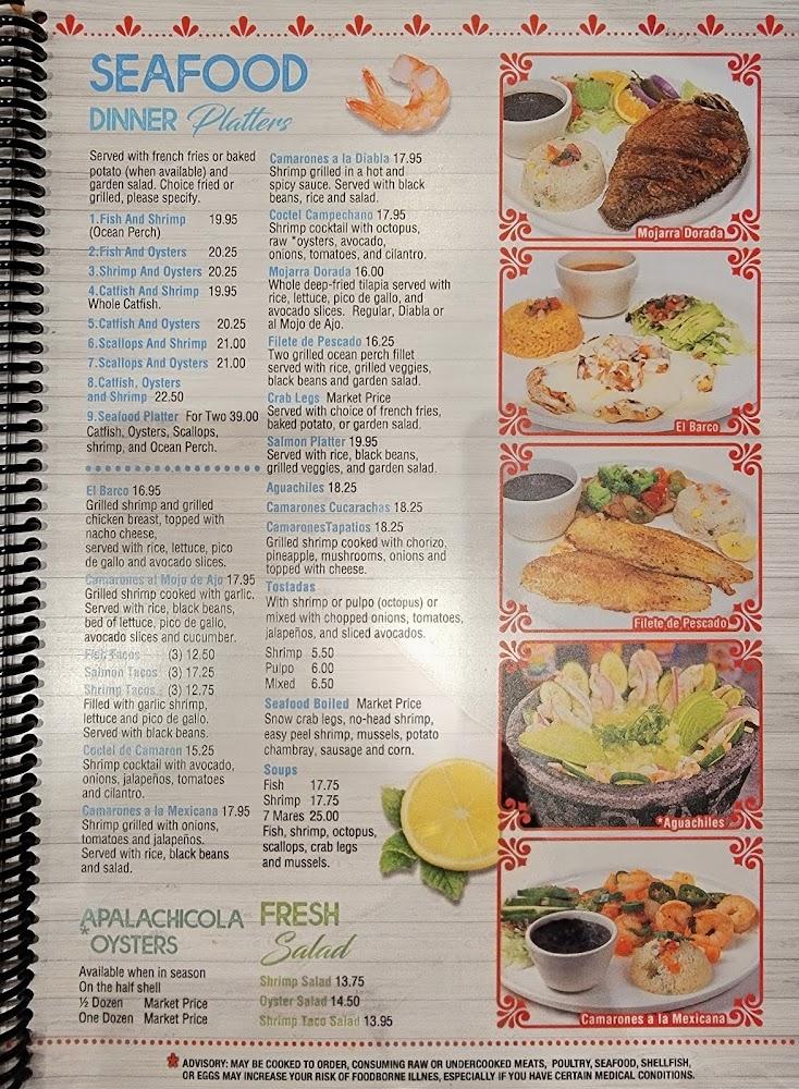 Seafood lovers will appreciate dishes like the peel 'n eat shrimp and calamari. The entrees are flavorful, generous, and often shareable. Vegetarian options add to the variety, allowing everyone to find something delicious. Children’s plates also make it family-friendly. The inclusion of shareable small plates fosters a communal dining experience. Overall, the blend of traditional Mexican cuisine and fresh seafood sets this menu apart, appealing to both adventurous eaters and those seeking comfort food.